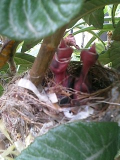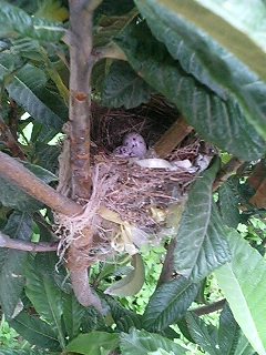 エレベータの鏡って何のためにあるのだろう? 調べてみると社団法人エレベータ協会に答えがあった。 >車いすのお客様が乗り込んだ状態で、かごの中で回転ができない際 >後ろ向きで出るときに後方を確認するためです。 ・・・ということで納得。 ●巣 うちの庭のびわの木に野鳥が巣を作った。木の実が食べられちゃうから壊したほうがいいと近所の人には言われるのだけど、珍しいことだしせっかくだからこのままにしておこうかと。巣の中に卵があるみたいだし。 |
